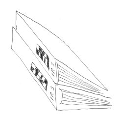 Pen on paper, 2012. I saw these books like these in a dream. Where I thought the logo should go were black and white squares.