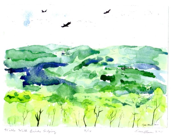 Hills With Birds Flying (Print)