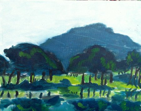 Lake, Hill Behind Trees