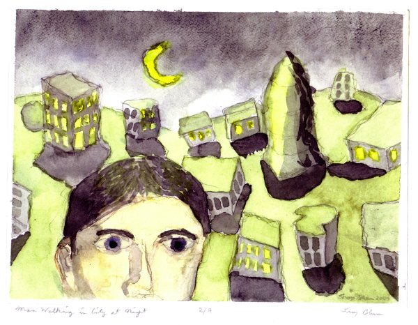 Man Walking in City at Night (Print)