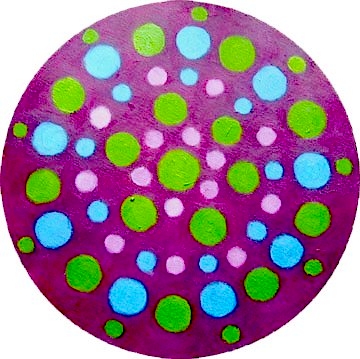 Mandala: Green, Pink and Blue Dots on Maroon